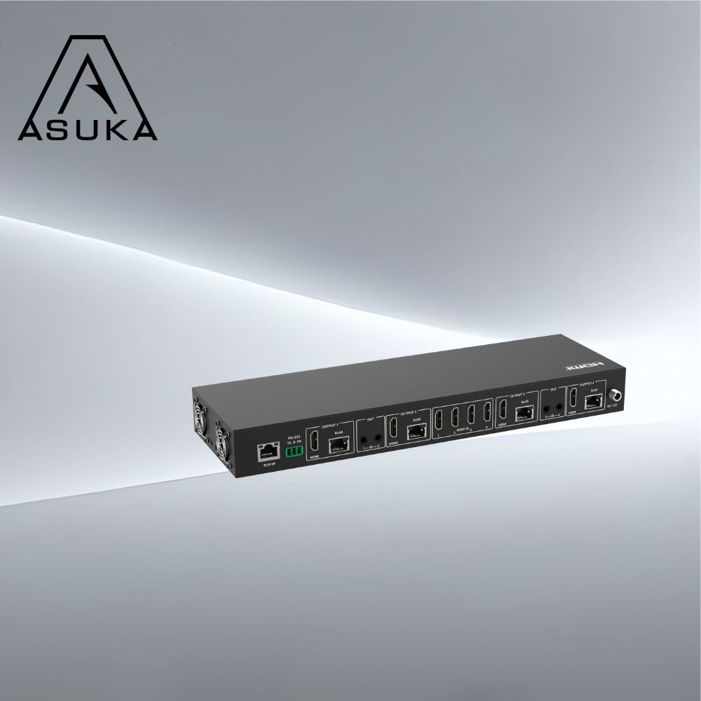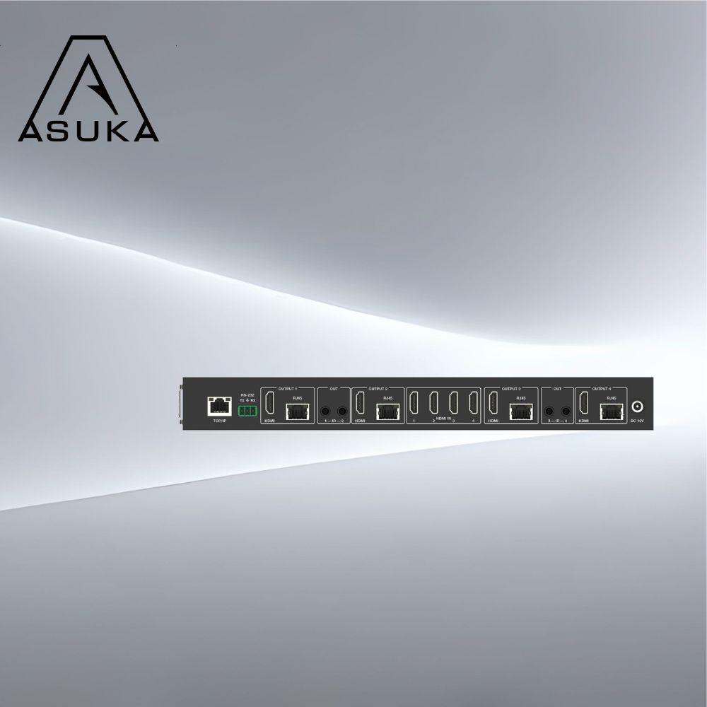 The 18Gbps 4×4 HDMI Matrix can connect four HDMI sources to eight displays. It features four HDMI outputs and each HDMI output is mirrored to provide a CAT-Cable output which runs simultaneously. It supports the transmission of video (resolution is up to 1080p Full HD and 4Kx2K@60Hz 4:4:4) and supports HD digital audio formats such as LPCM 7.1CH, Dolby TrueHD, Dolby Digital Plus and DTS-HD Master Audio. Connect a CAT Receiver to each of the CAT-Cable outputs to extend the HDMI signal up to 230ft/70m for multi-room connectivity. Each HDMI output supports 4K2K to 1080P downscaler independently. The product supports control via front panel buttons, IR remote, RS-232, LAN, and Web GUI.
