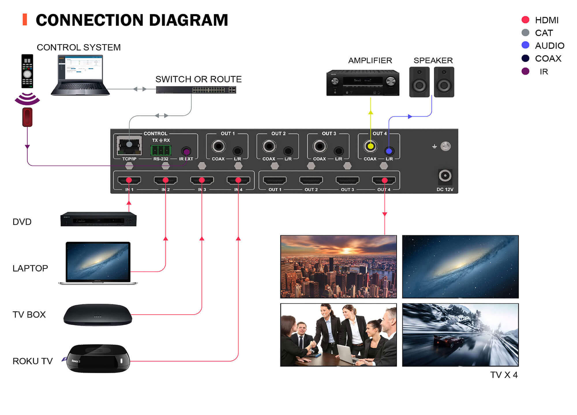 HDMI MATRIX 4 X 4 WITH AUDIO:
