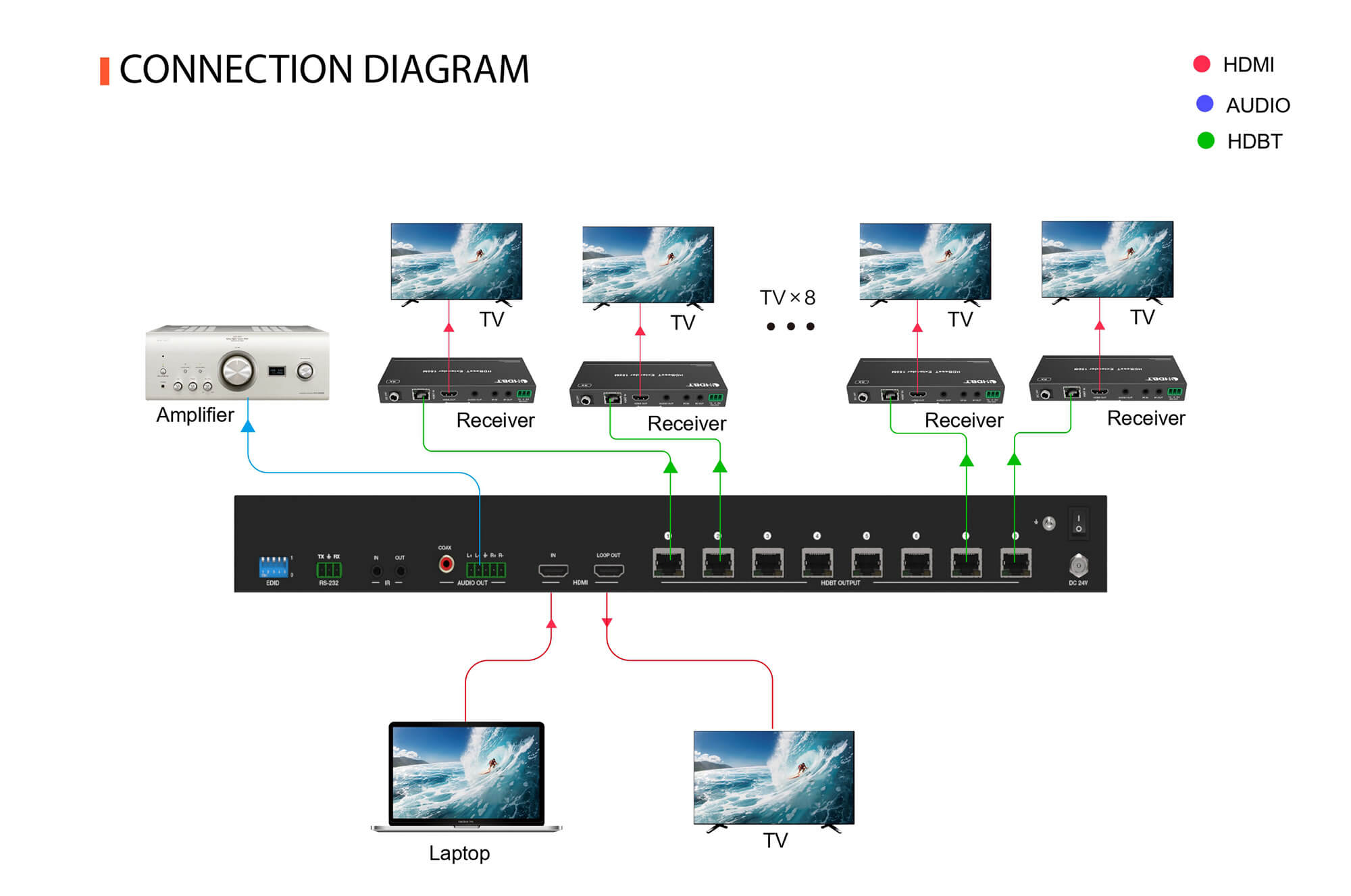 HDMI Splitter 1x4 V2.0 4K60HZ HDBaseT Over cat 150m: